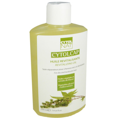 Le laboratoire CYTOLNAT conçoit des produits dermo-cosmétiques pour réparer les peaux abîmées par l’âge ou les imperfections, améliorer l’état des cuirs chevelus sensibles… par des composants d’origine naturelle en agissant au niveau des cellules. L’huile revitalisante CYTOLCAP répare les cheveux abîmés pour les rendre plus forts et toniques, protège le cuir chevelu et le revitalise, protège les cheveux des rayons UV et agressions quotidiennes ainsi que de l’oxydation des cellules capillaires, les nourrit, ralentit leur chute, et leur redonne de la souplesse grâce au complexe oléagineux (riche en oméga 3 et 6 et vitamine B5), qui contient 6 huiles (ricin, pépin de raisin, soja, tournesol, amande douce, germe de blé) ainsi qu’à un extrait de mauve et des vitamines (A et E). Après le soin, les cheveux retrouvent densité, brillance, santé et vitalité. Sans conservateur