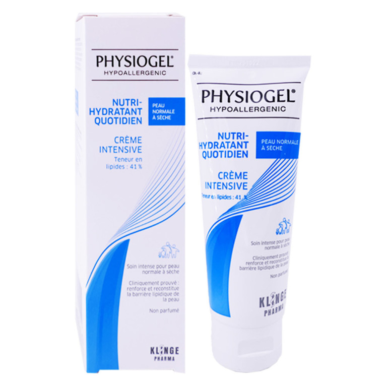 La Crème Intensive PHYSIOGEL Nutri-Hydratant Quotidien est un soin à la formule haute tolérance (sans parfum, sans conservateur, sans colorant, non comédogène, hypoallergénique) qui réunit 3 critères fondamentaux pour assurer une hydratation optimale. Cette crème à la texture onctueuse et non grasse a une composition lipidique similaire à celle de la peau (+ de 40% de lipides). Sa formule Physiologic BioMimic assure la réparation rapide des peaux sèches. La crème va protéger des agressions extérieures responsables de la sècheresse et la sensibilité cutanée, réparer instantanément et apaiser de tout inconforts. L’hydratation est immédiate et durable, la peau retrouve douceur, souplesse et confort.