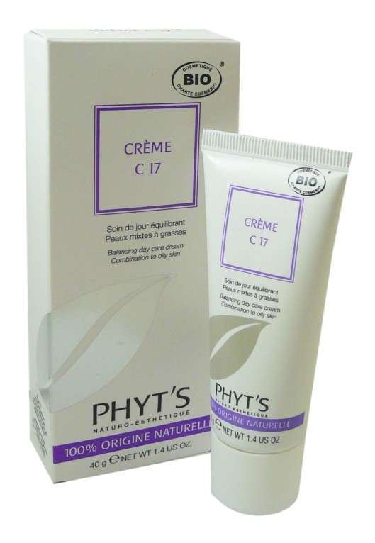 PHYT’S développe depuis 40 ans des soins cosmétiques issus des fondements de la naturo-esthétique, associant santé et beauté pour répondre de façon naturelle à tous les besoins quelque soit le type de peau. La gamme Peaux mixtes à grasses propose des produits formulés à base d’actifs naturels purifiants et astringents : thym, cyprès, romarin… pour offrir des soins équilibrants aux peaux sujettes aux imperfections. PHYT’S crème C17, composée de citron, lavande, et girofle, est un soin de jour spécialement conçu pour purifier et équilibrer les peaux grasses à mixtes. Jour après jour, les imperfections s’estompent, les pores se resserrent et le grain de peau s’affine.