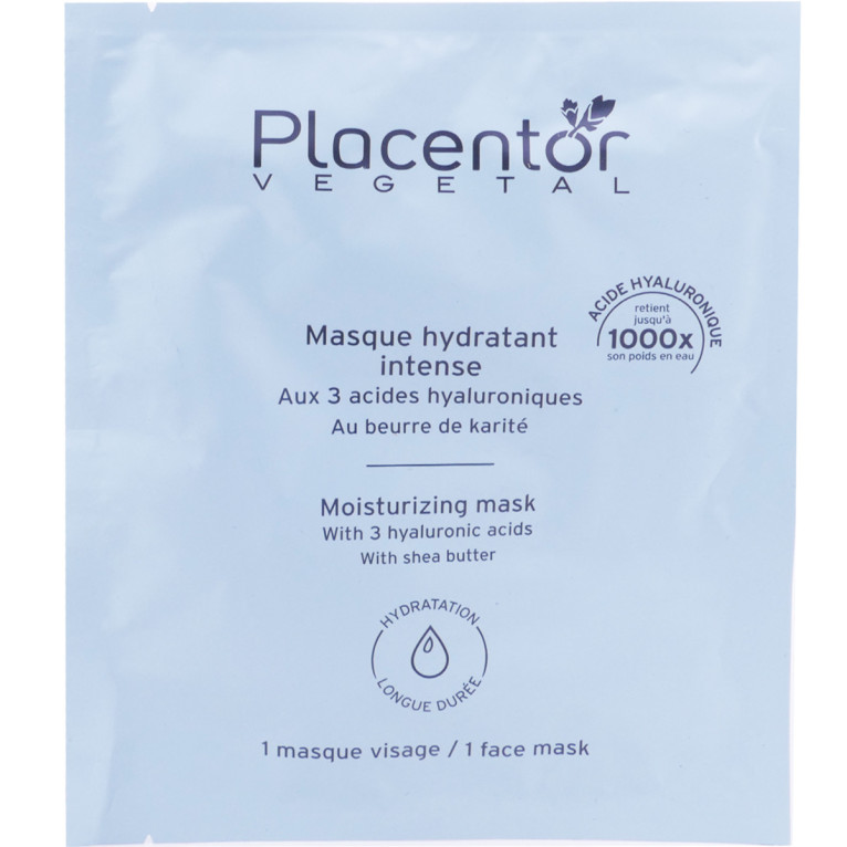 Placentor Végétal propose un large choix de soins pour le visage, le corps et les cheveux à base de placenta végétal. Obtenu à partir de la glycina hispida et de sucs de bourgeons de hêtre, le placenta végétal offre des qualités exceptionnelles de régénération cutanée et d’hydratation, dans le plus grand respect de l’équilibre des épidermes délicats. Il en résulte des soins à l’efficacité immédiate offrant une amélioration visible de la qualité de la peau. Le Masque Hydratant Intense au placenta végétal, au conditionnement individuel tissu doux imbibé, est enrichi en collagène marin comblant et redensifiant, en Beurre de Karité hydratant et aux 3 acides hyaluroniques régénérants. Ce masque hydratant anti-âge, prêt à l’emploi raffermit les traits, réduit les rides, hydrate l’épiderme en profondeur et affine le grain de peau.