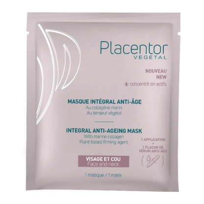 Placentor Végétal propose un large choix de soins pour le visage, le corps et les cheveux à base de placenta végétal. Obtenu à partir de la glycina hispida et de sucs de bourgeons de hêtre, le placenta végétal offre des qualités exceptionnelles de régénération cutanée et d’hydratation, dans le plus grand respect de l’équilibre des épidermes délicats. Il en résulte des soins à l’efficacité immédiate offrant une amélioration visible de la qualité de la peau. Le Masque intégral anti-âge, au conditionnement individuel tissu doux imbibé, est enrichi en collagène marin comblant et redensifiant, et en extraits de Quillaja et Kigelia : des actifs dermo-tenseurs raffermissants issus d’arbres exotiques à effet lifting immédiat. Ce masque prêt à l’emploi retend instantanément les traits, réduit les rides, hydrate l’épiderme en profondeur, apporte fermeté et éclat au visage.