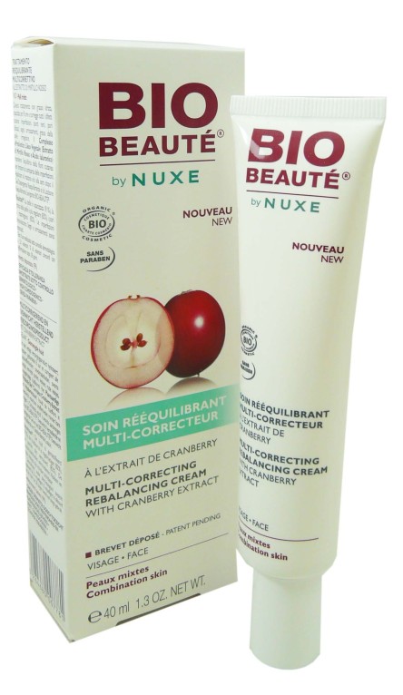 La gamme Soins rééquilibrants Bio Beauté de NUXE sont composé de soin sdoux à l’extrait de cranberry pour prendre soin naturellement des peaux mixtes à imperfections. Le soin rééquilibrant multi-correcteur matifie la peau en estompant tous les petits défauts cutanés (imperfections, rougeurs, pores dilatés,…), lutte contre l’apparition de nouvelles imperfections en équilibrant la flore cutanée, et hydrate intensément grâce au complexe « probiotique-like » végétal composé d’extrait de cranberry et d’acide hyaluronique spécifique. Sa texture non grasse laisse la peau douce après le soin et confortable. La peau est matifiée et les zones de brillance estompées pendant 8 heures.