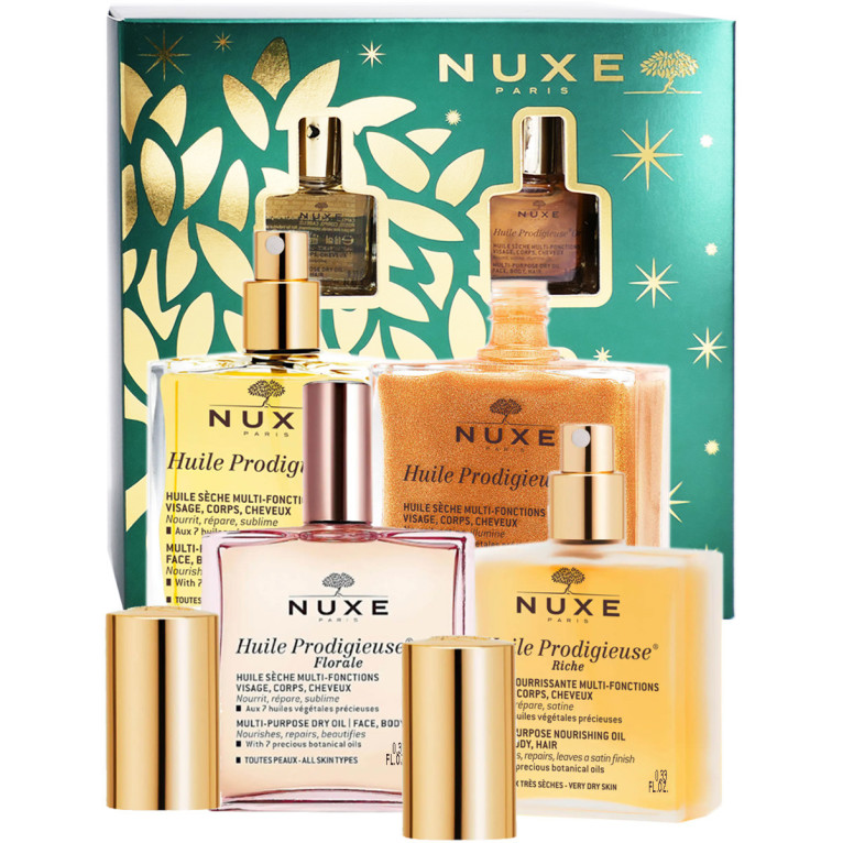 Le Coffret « Les 4 Prodigieuses » discount de NUXE, le pouvoir prodigieux de la nature dans ces 4 huiles culte multifonctions petit format, nourrissantes, réparatrices et adoucissantes, en petit format au parfum unique et mythique NUXE, visage, corps et cheveux dans votre parapharmacie en ligne à prix discount.
