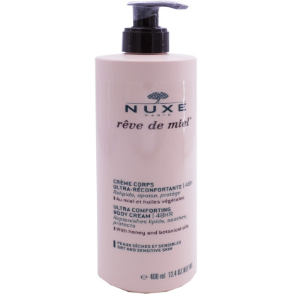 Nuxe, contraction de Nature et Luxe, développe depuis 25 ans des soins cosmétiques raffinés, élaborés avec des actifs végétaux précieux, pour offrir des produits associant avec le plus bel équilibre : nature, performance et sensualité. La ligne de soins Rêve de Miel® est une gamme de soin à base d’huiles végétales précieuses indiquée pour les peaux sèches à très sèches afin de leur apporter protection et réconfort. La Crème Corps Rêve de Miel, est une crème ultra-réconfortante à la texture veloutée, fondante et sans effet gras à base de miel et d’huiles végétales précieuse qui va relipider et apaiser les peaux très sèches et sensibles. Protégée des agressions extérieures, la peau est visiblement plus douce et plus souple et retrouve un confort inégalable.