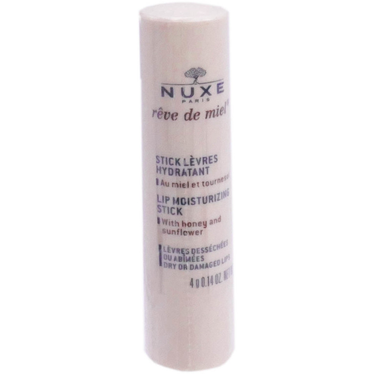 Nuxe, contraction de Nature et Luxe, développe depuis 25 ans des soins cosmétiques raffinés, élaborés avec des actifs végétaux précieux, sans huile minérale ni matière animale hormis les produits de la ruche, pour offrir des produits associant avec le plus bel équilibre : nature, performance et sensualité. La gamme Rêve de Miel propose des soins cocons pour nourrir, apaiser et réconforter les peaux les plus sensibles. Le Stick lèvres Rêve de Miel nourrit et répare intensément, protège de la sècheresse et apaise les lèvres grâce au miel, et au tournesol qui sont associées à des Huiles végétales précieuses (Son de Riz, Macadamia, Amande Douce, Argan), Extrait d'Orge, Beurre de Karité, Vitamine E,.... Les lèvres seront protégées et intensément nourries pour retrouver confort et douceur et délicatement parfumées. Ce soin pour lèvres a été testé en condition de grand froid canadien