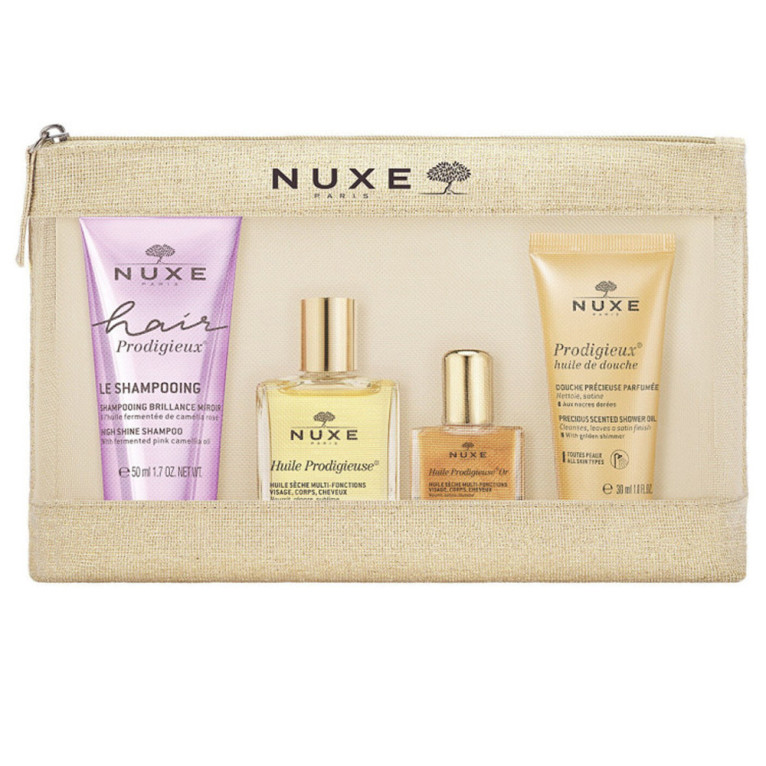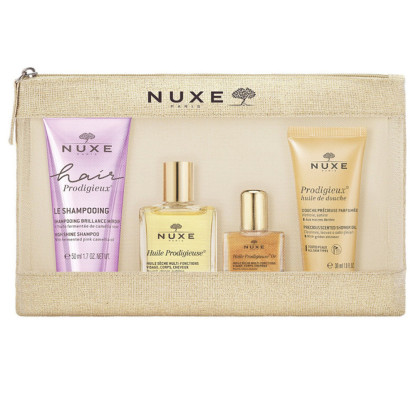 La marque NUXE est reconnue pour ses produits de qualité et ses ingrédients naturels. Cette trousse de voyage contient le shampooing Hair Prodigieux® pour des cheveux brillants et doux, l'huile sèche multi-usage Huile Prodigieuse® pour nourrir et sublimer votre peau et vos cheveux, l'huile sèche pailletée Huile Prodigieuse® Or pour un effet lumineux et glamour, et enfin l'huile de douche Prodigieux® pour une peau douce et hydratée.