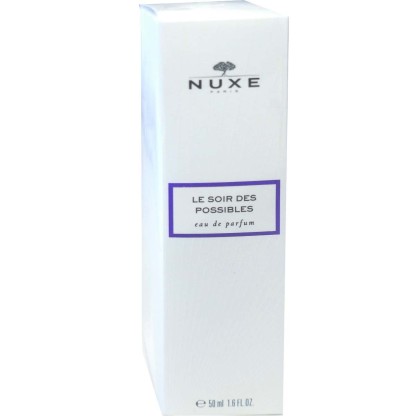 Nuxe, contraction de Nature et Luxe, développe depuis 25 ans des soins cosmétiques raffinés, élaborés avec des actifs végétaux précieux, sans huile minérale ni matière animale hormis les produits de la ruche, pour offrir des produits associant avec le plus bel équilibre : nature, performance et sensualité. Les Eaux de Parfums de NUXE créées par de grands parfumeurs « la Maison Givaudan » éveillent les sens afin que « tout devienne possible » ! L’Eau de parfum « Le Soir des Possibles » créée par le parfumeur Louise TURNER, a des vertus sensuelles et féminines par ses agréables odeurs voluptueuses et acidulées de jasmin sambac, patchouli et sorbet cassis. Cette Eau de Parfum laissera sur la peau des notes audacieuses et sensuelles semblable au coucher du soleil "Quand les ombres s’animent et embrasents tous nos sens. Ne se fier qu’à vos envies.".