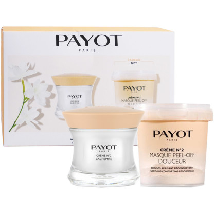 Le Coffret « Crème N°2 » discount de PAYOT, la beauté en mouvement dans votre parapharmacie en ligne, dans 2 soins spécialement conçus pour traiter et apaiser toutes les peaux sensibles et réactives pour une routine beauté apaisante, visage : Crème N°2 Cachemire (50ml) et Crème N°2 Masque Peel-Off Douceur (10g) offert.