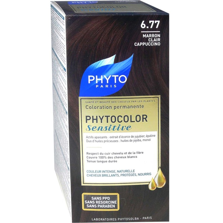 PHYTOCOLOR SENSITIVE de PHYTO à prix discount dans votre parapharmacie en ligne, la puissance végétale au service des cheveux exigeants dans un soin conçu pour assurer une coloration permanente respectueuse, intense et lumineuse. Marron clair cappuccino 6.77