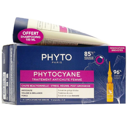 PHYTOCYANE KIT TRAITEMENT ANTICHUTE REACTIONNELLE FEMME 12 AMPOULES + SHAMPOOING 100ML