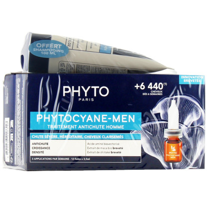 PHYTOCYANE MEN TRAITEMENT ANTICHUTE SEVERE 12 FIOLES + SHAMPOOING 100ML