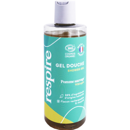 Gel douche Bio Pomme Sauvage discount de Respire, un soin d'hygiène à 98% d'origine naturelle pour nettoyer la peau du corps tout en douceur, dans votre parapharmacie en ligne à prix discount.