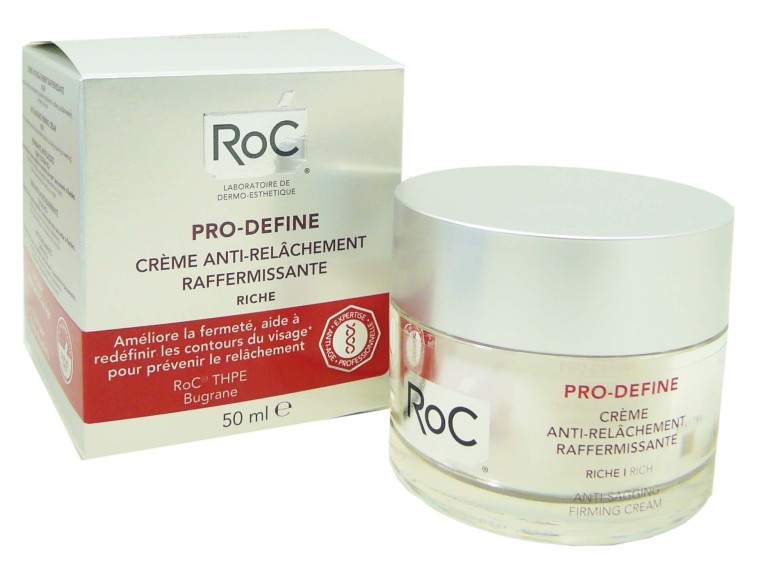 Depuis plus de 50 ans, RoC développe des produits dermo-cosmétiques de haute qualité, qui agissent autant sur les causes des désordres cutanés que sur leurs effets, grâce à des technologies toujours plus innovantes, pour offrir à toutes les femmes le pouvoir de rester belles. La gamme PRO-DEFINE propose des soins formulés à base de THPE et d’extrait de Bugrane, actifs capables de provoquer une contraction des cellules de la peau et relancer la production d’élastine, pour améliorer de façon visible la fermeté de l’épiderme et prévenir son relâchement. La Crème Anti-Relâchement Raffermissante PRO-DEFINE possède une texture riche et nourrissante qui pénètre la peau sans effet de gras, spécialement adaptée aux peaux sèches à très sèches.