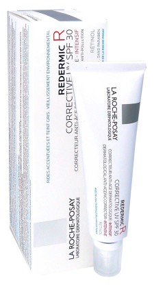 Depuis plus de 30 ans, le laboratoire LA ROCHE POSAY développe des produits dermo-cosmétiques élaborés avec de l’eau thermale de LA ROCHE POSAY riche en Sélénium aux propriétés anti-radicalaires, pour répondre à tous les besoins des peaux même les plus fragiles. La gamme REDERMIC propose des produits élaborés à base d’actifs dermatologiques de pointe pour offrir une efficacité anti-âge aux peaux les plus sensibles. Redermic R Corrective UV 30 intensif composé de rétinol e(pur et à libération progressive) qui est un actif anti-âge puissant et de filtres UVA UVB (UVA PPD20 et UVB SPF 30), va diminuer l’apparence des rides et ridules même les plus marquées, et protéger la peau des agressions quotidiennes (pollution, soleil, poussière,…). En se libérant progressivement, le soin va agir très rapidement et à long terme. Sa texture va laisser la peau douce et fraîche à l’application. Dès la première application, la peau est lisse et retrouve son éclat. En seulement 1 mois d’applications régulières les rides profondes diminuent, les taches sont estompées, la peau est plus forte face aux agressions extérieures.