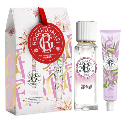 Le coffret Feuille de Thé de ROGER GALLET discount, pour laisser un sillage unique inspiré d’un parfumeur français : Eau parfumée Bienfaisante (30ml) et Crème Mains (30ml). Edition 2023