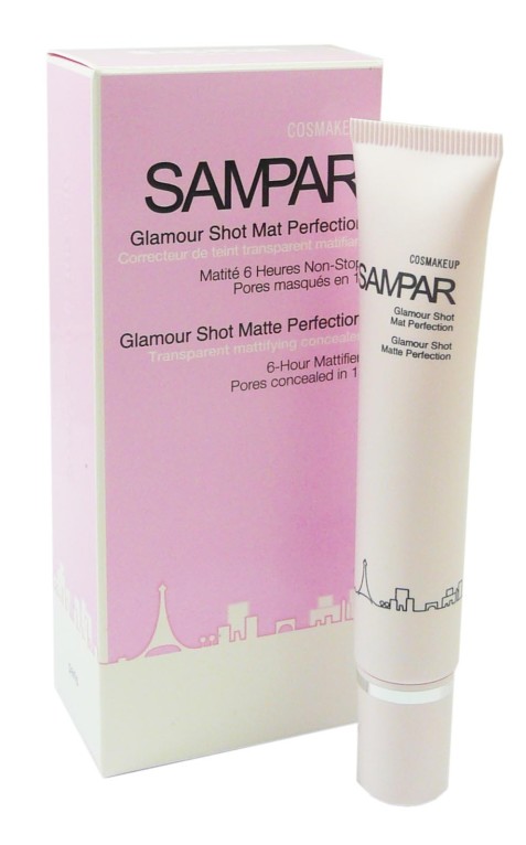 Glamour Shot Mat Perfection de SAMPAR, le correcteur de teint des peaux brillantes pour rétablir clarté et luminosité du visage avec un teint unifié pendant 6 heures.