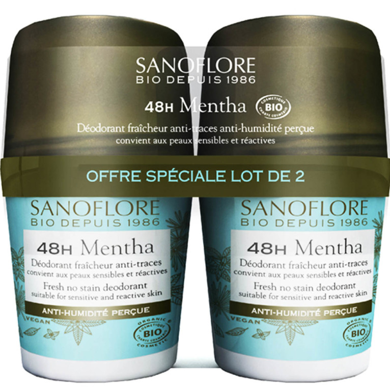 SANOFLORE 48H MENTHA DEODORANT BIO LOT DE 2X50ML