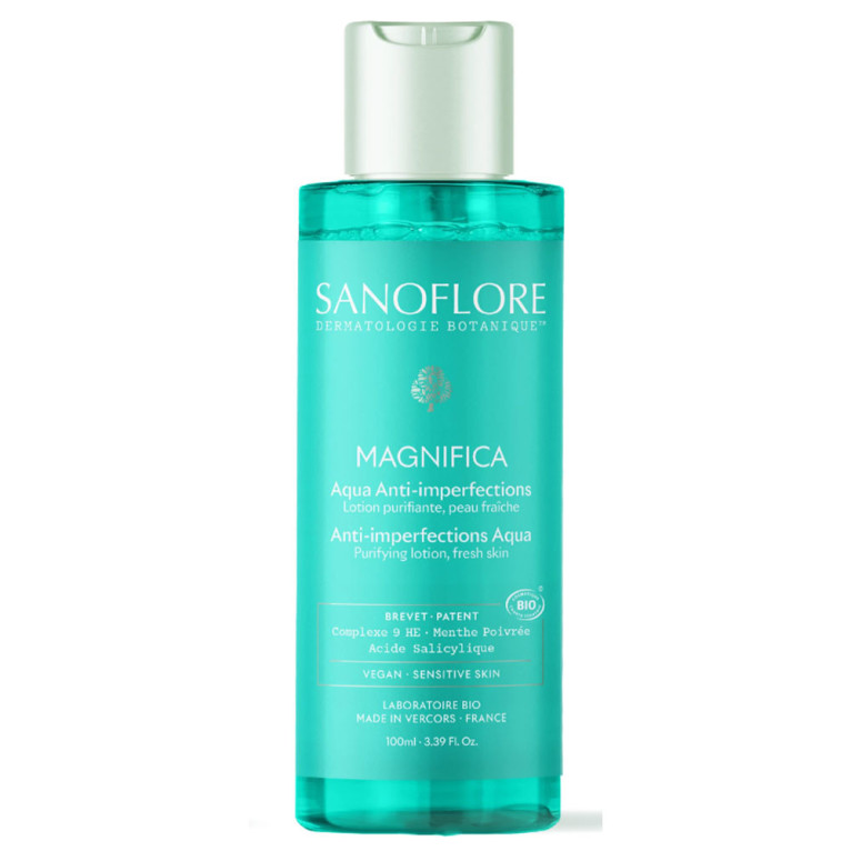 SANOFLORE BIO MAGNIFICA LOTION AQUA ANTI IMPERFECTIONS 100ML est en vente en ligne sur le site de votre parapharmacie à prix discount, une lotion tonique purifiante idéale pour les peaux à imperfections et à tendance grasse.