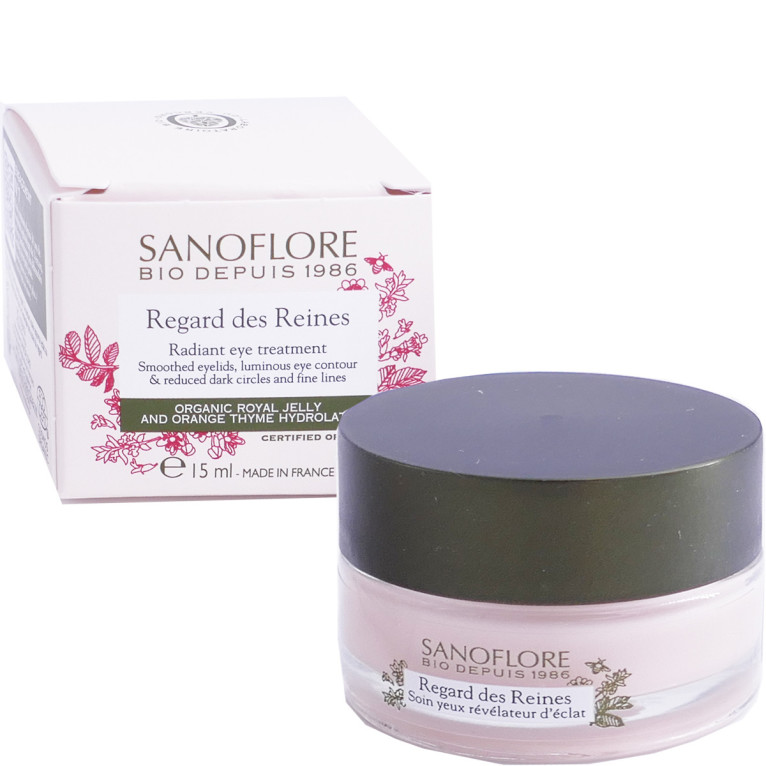 Le soin pour les yeux révélateur d’éclat Regard des Reines Bio est le soin parfait, véritable concentré de beauté pour offrir une peau parfaite et un regard frais et éclatant. SANOFLORE a inclus dans ce soin miracle des actifs doux Bio, pour agir sur les signes de l’âge et de fatigue du contour des yeux en réduisant les ridules autour des yeux, les poches et les cernes. Des pigments illuminateurs complètent la formule pour une peau qui retrouve sa luminosité instantanément. Jour après jour, le regard retrouve son éclat, poches et cernes s’atténuent, les paupières se lissent et les ridules sont réduites pour un regard reposé et frais.