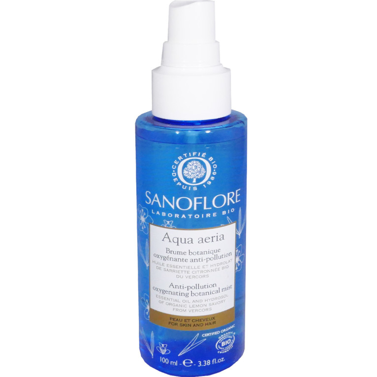 SANOFLORE extrait toutes les richesses du végétal et les incorpore dans une gamme de soins de beauté élaborés à base d’eaux florales et d’huiles essentielles, pour offrir le meilleur de la nature aux peaux les plus sensibles. Les soins de la gamme Aqua Aeria sont élaborés à base d’huiles essentielles Bio et de Sarriette citronnée Bio, deux actifs naturels aux pouvoirs anti-oxydants incomparables. La Brume Botanique oxygénante anti-pollution Aqua Aeria est un soin expert hautement hydratant et protecteur, formulé pour protéger la peau des agressions quotidiennes telles que la pollution, les radicaux libres, et hydrater en profondeur l’épiderme, raviver l’éclat du visage. Cette brume contient de l’huile essenteille et hydrolat de Sarriette citronnée bio du Vercors pour des résultats remarquables sur le visage. Elle va protéger la peau des agressions quotidiennes qui causent le teint terne, redonner de la vitalité à la peau, hydrater intensément pour limiter la perte en eau et assurer une hydratation longue durée, et apaiser de tout inconforts. Elle s’applique également sur les cheveux pour les protéger et renforcer leur brillance. Sa brume fraîche et aérienne enveloppera le visage et les cheveux d’agréables senteurs et apaisera l’esprit. Instantanément, la peau est protégée, et revitalisée, le visage retrouve son éclat, les cheveux leur douceur et leur brillance.