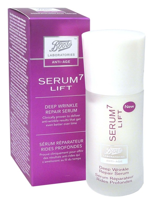 Les produits SERUM 7 du laboratoire Boots, sont composés de soin anti-âge aux résultats performants pour redonner de la jeunesse au visage et au corps. Le sérum Lift Réparateur rides profondes est composé d’acide hyaluronique, d’un complexe antioxydant (peptides de riz actifs, vitamine C, mûre, ginseng), de pro-rétinol (ou vitamine A), d’un complexe Plus Age Defence aux propriétés anti-âge renforcé et d’une nouvelle génération de peptides. Il élimine les rides même les plus profondes ainsi que les ridules, raffermit la peau pour lui redonner de l’élasticité, régénère la peau en stimulant la production de collagène et le renouvellement des cellules afin de combler les rides profondes et ainsi la lisser, et protège des agressions extérieures et du vieillissement prématuré de l’épiderme afin de lutter contre l’apparition de nouvelles rides et ridules. En seulement 1 mois, la peau est plus ferme et lisse pour un visage qui retrouve sa jeunesse et sa luminosité !