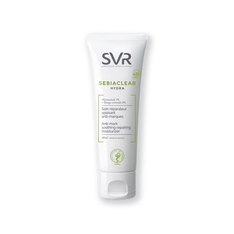 SEBIACLEAR Hydra de SVR, le soin des peaux acnéiques asséchées ayant subi des traitements médicamenteux ou dermatologiques pour l'acné, pour redonner confort et douceur.