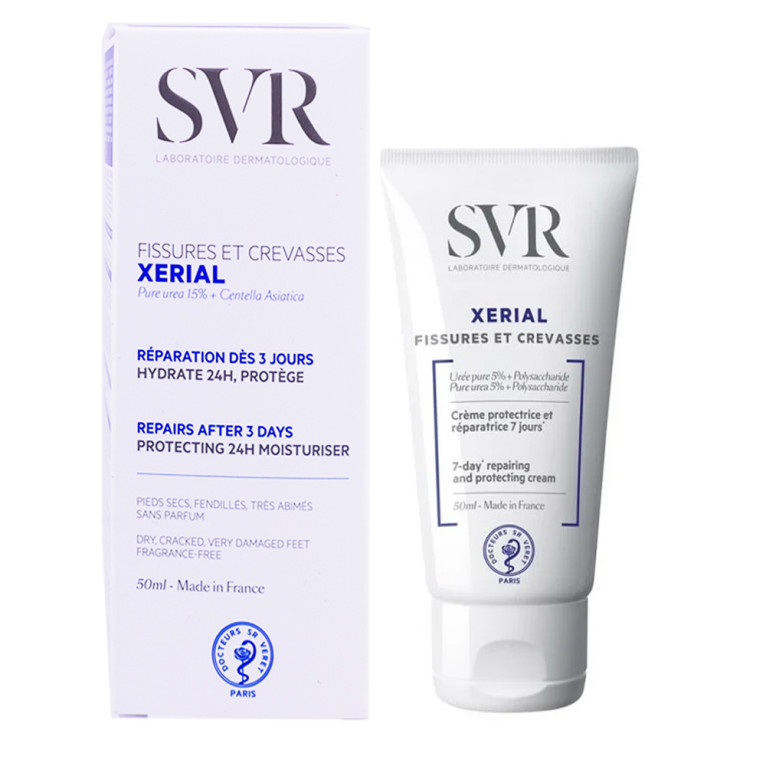 Afin de proposer des solutions aux problèmes de sécheresse cutanée, SVR a conçu une gamme de soins dermo-cosmétiques à base d’urée pure au pouvoir hautement hydratant : XERIAL. La crème Fissures et crevasses Xerial de SVR riche en Polysaccharide, isole l’épiderme en renforçant le film protecteur pour lutter contre l’apparition des fissures et crevasses ainsi que des agressions extérieures, répare, et hydrate intensément pour apaiser de tout tiraillements la peau. Les pieds sont réparés en 7 jours. Sa texture légère pénètre rapidement et donne à la peau un grand confort dès l’application. La peau retrouve sa douceur et est lisse.