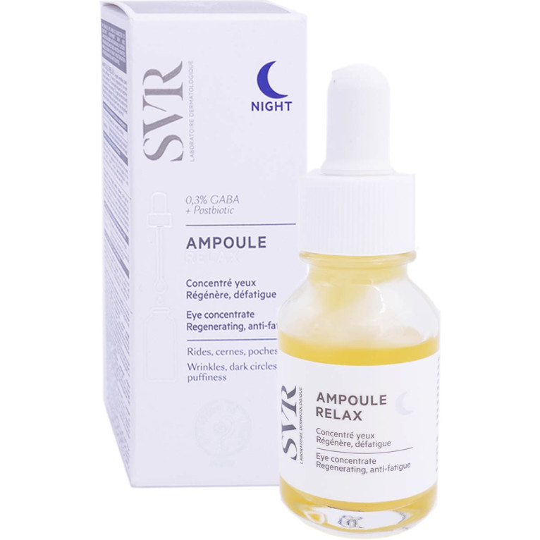 Ampoule Relax discount, le soin expert nocturne anti-âge concentré de SVR dans votre parapharmacie en ligne, dans un soin contour des yeux conçu pour retrouver un regard plein d’éclat. Contour des yeux fatigué, et marquées par l’âge. Toutes peaux