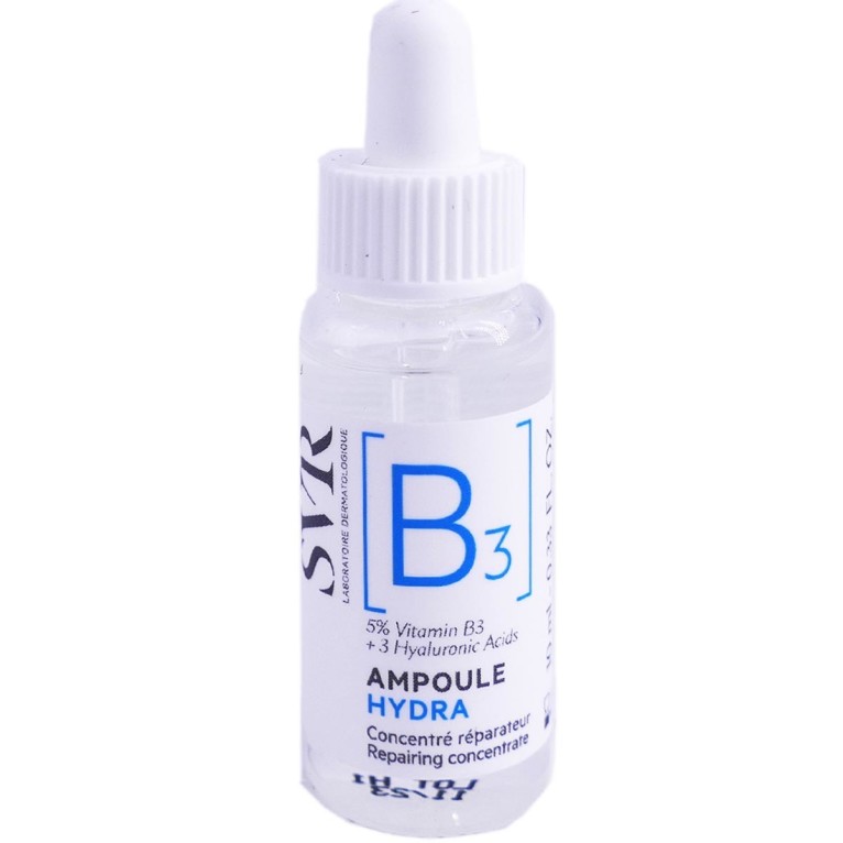 [B3] Ampoule Hydra est un sérum ultra-concentré anti-âge ciblé qui va par la vitamine B3 (ou niacinamide) et aux 3 acides hyaluroniques de poids moléculaires différents (moyen, haut, très haut), lutter contre les signes de l’âge et la perte en eau en rechargeant instantanément les réserves hydriques, repulper et renforcer la peau déshydratée pour mieux lutter contre la déshydratation et les inconforts. Dès l’application la peau est réconfortée pour retrouver de la douceur. Dès 7 jours, la peau retrouve toute sa beauté, les signes de l’âge sont estompés, la peau est repulpée.