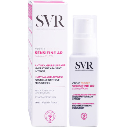 Crème Teintée Sensifine AR de SVR discount, un soin douceur unifiant et apaisant intensif dans votre parapharmacie en ligne à prix discount, qui unifie le teint et apaise les peaux sujettes aux rougeurs à tendance couperosique du visage.