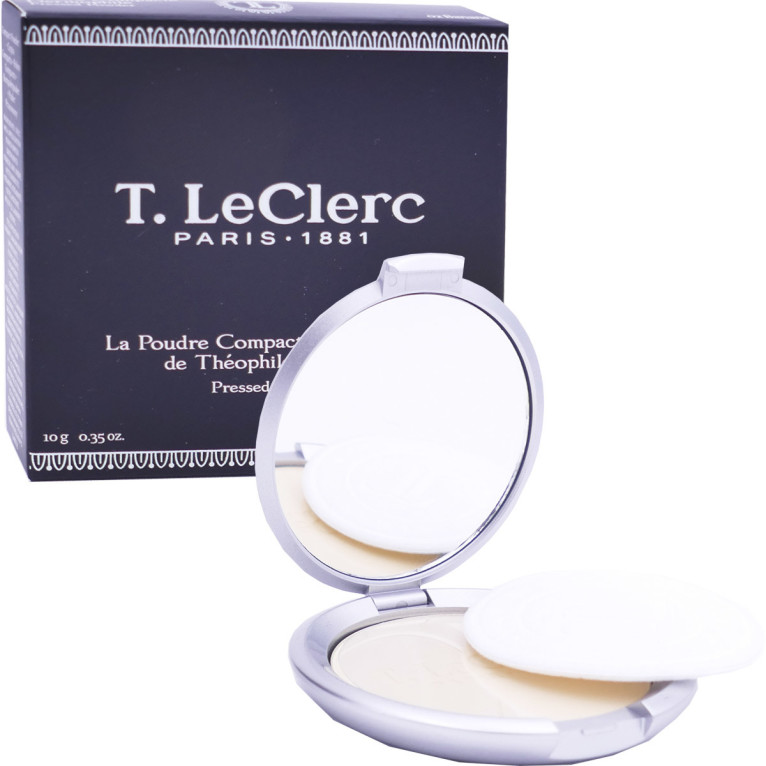 La marque T.LeClerc sublime la beauté des femmes depuis 130 ans et a développé une large gamme de produits de maquillage adulés par les maquilleurs professionnels et les Top- models du monde entier. La poudre libre est le produit mythique de la marque : son fondateur Théophile LeClerc, véritable esthète, conçoit une poudre de riz destinée aux élégantes du Paris de la belle époque. La finesse et la légèreté de cette poudre en font un succès immédiat, succès non démenti à ce jour. Cette poudre est aujourd’hui proposée en version compacte, une texture fine et douce pour unifier et matifie le teint, et assurer une peau subtilement veloutée. Et comme chaque carnation de peau est unique, la gamme propose 12 teintes de poudre. Sa formule douce à base d’amidon de riz, de talc et d’oxyde de zinc, laisse la peau respirer et assure un teint exceptionnel, sans défaut, tout au long de la journée.