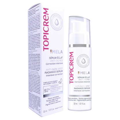 TOPICREM MELA SÉRUM ÉCLAT ANTI TACHES 30ML : Découvrez ce sérum innovant en vente en ligne, sur le site de votre parapharmacie à prix discount, pour un teint éclatant et uniforme.