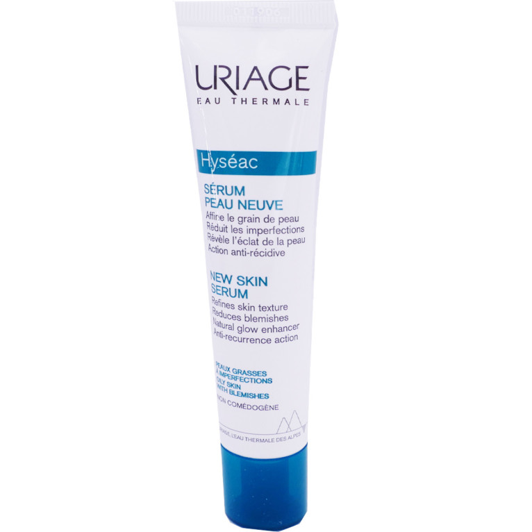 URIAGE a conçu un programme de soins spécifiques destinés à offrir des solutions ciblées aux problèmes des peaux grasses sujettes aux imperfections : HYSEAC. Le Sérum Peau neuve est composé d’actif astringent (extrait végétal Pore Refiner), de zinc, et d’un complexe d’AHA kératorégulateur (Lactique, Malique et Glycolique). Ce soin diminue et régule la quantité de sébum en resserrant les pores, affine le grain de peau, purifie, matifie pour éliminer les zones de brillance, et protège contre l’apparition de nouvelles imperfections. Jour après jour, le grain de peau s’affine comme une peau neuve, les imperfections s’estompent, le teint retrouve son éclat. Formule hypoallergénique.