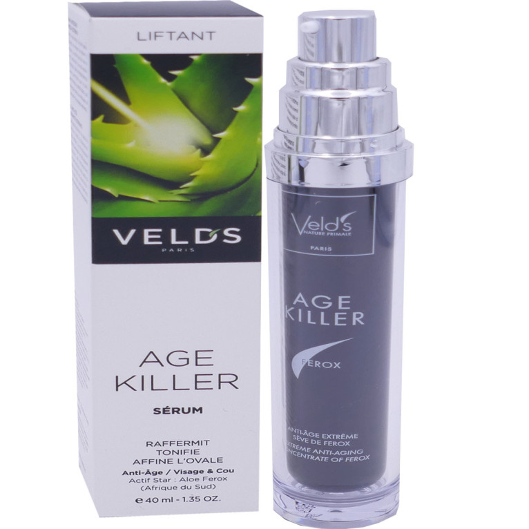 Le Sérum Anti-Âge Fermeté Extrême AGE KILLER de VELD’S discount, la cosmétique d’Afrique dans votre parapharmacie discount, dans un soin anti-âge pour les peaux en manque de fermeté. Visage.