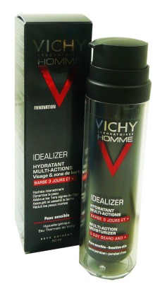 L’Eau Thermale de VICHY puise ses multiples bienfaits au cœur des volcans d’Auvergne. Formulée par la nature, non reproductible, riche en minéraux, cette eau unique offre ses innombrables vertus à la peau : apaisantes, fortifiantes et régénérantes. Les laboratoires VICHY ont intégré les vertus thérapeutiques de cette eau précieuse dans leurs produits cosmétiques. VICHY a conçu une gamme de soins spécialement formulés pour répondre aux besoins spécifiques des peaux masculines avec des produits alliant efficacité optimale et ultra haute tolérance cutanée : VICHY HOMME. IDEALIZER hydratant multi-actions barbe 3 jours et + de VICHY HOMME, à la texture fluide frais qui ne colle pas et pénètre sans effet de gras, est un soin global qui favorise l’hydratation cutanée, dynamise la peau, lutte contre les effets du vieillissement, assouplit et discipline la barbe, exfolie et réduit les imperfections cutanées. Résultats : le visage est dynamisé, la peau est adoucie, la barbe soignée parait plus saine. Formule hypoallergénique, peaux sensibles.