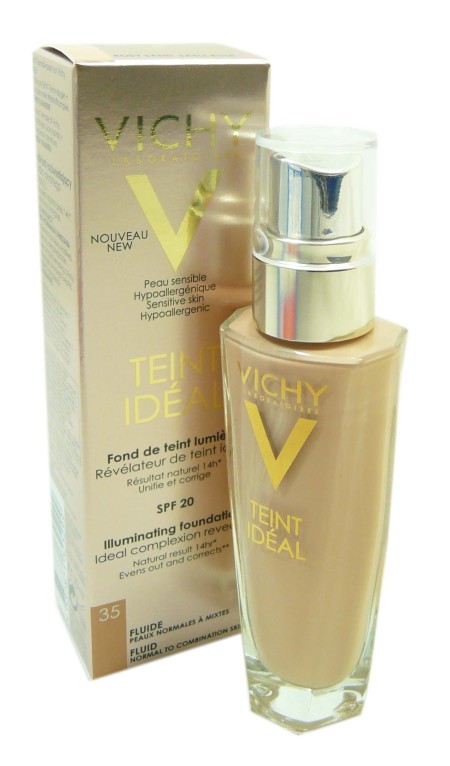 Vichy a conçu une nouvelle gamme de soins pour le teint, gorgés d’actifs aux pouvoirs perfecteurs et illuminateurs pour offrir naturellement une peau radieuse et un teint rayonnant : TEINT IDEAL. Les fonds de teint fluide à la texture fraîche et légère adaptée aux peaux normales à mixtes, sont spécialement formulés pour corriger les imperfections et unifier le teint de façon très naturelle pendant 14 heures. Ils associent un complexe correcteur perfecteur de peau à des vitamines C et E aux propriétés antioxydantes et un agent vitalisant. La nouvelle technologie lumière de ces fonds de teint recouvre chaque millimètre de l’épiderme d’un véritable voile de lumière pour sublimer la peau et illuminer le teint. Formule hypoallergénique enrichie à l’eau thermale de Vichy, sans paraben.