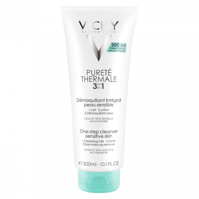 Vichy a conçu une gamme de soins nettoyants et démaquillants enrichis en Eau Thermale de Vichy pour offrir à la peau toutes les vertus apaisantes et fortifiantes de cette eau rare. Le soin démaquillant intégral 3 en 1 rassemble en 1 seul produit un lait démaquillant, une lotion et un démaquillant pour les yeux. En un seul geste, ce lait-gel très frais élimine toutes les traces de maquillage et nettoie en douceur les peaux les plus sensibles. Sa formule hypoallergénique testée sous contrôle dermatologique et ophtalmologique assure une tolérance optimale. Sans paraben, convient aux porteurs de lentille.
