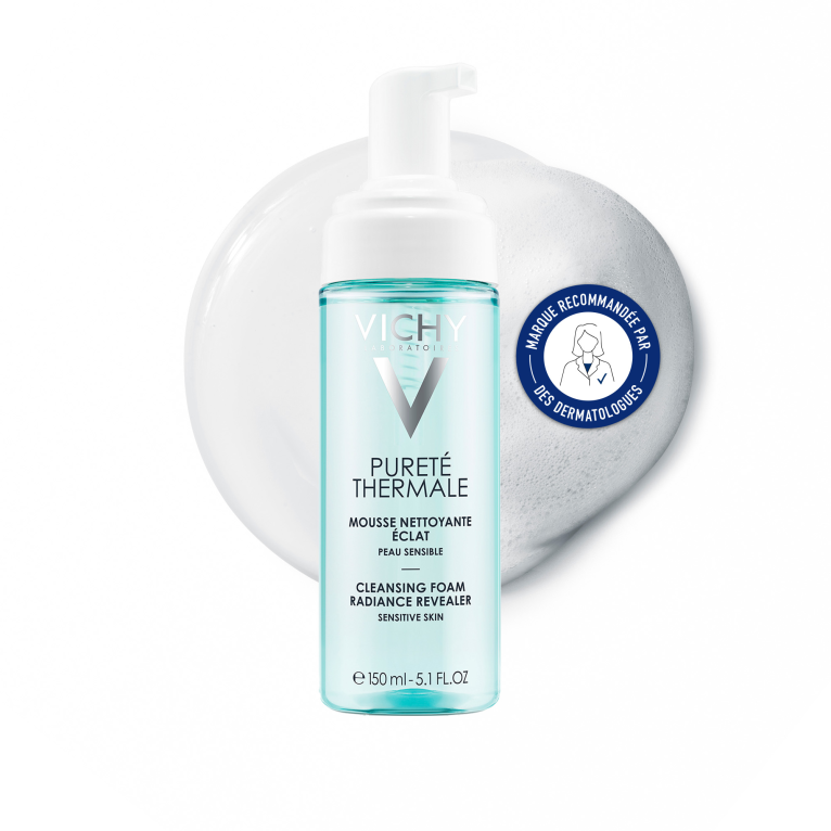 Pureté Thermale eau moussante nettoyante, l’expertise VICHY dans un soin qui nettoie et révèle l’éclat des peaux sensibles et délicates.