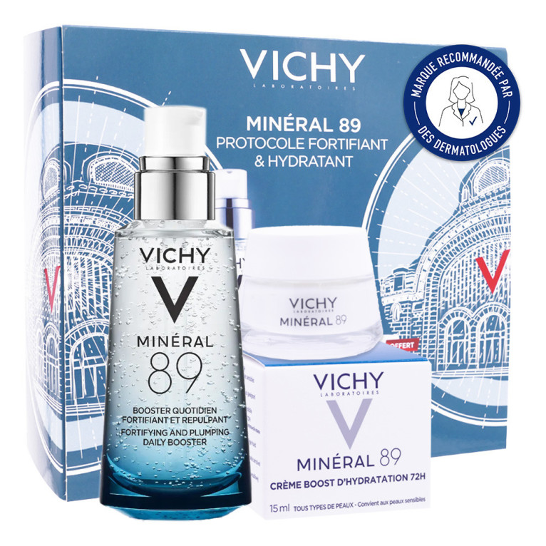 VICHY COFFRET MINÉRAL 89 "Protocole Fortifiant et Hydratant" en vente en ligne, sur le site de votre parapharmacie à prix discount. Offrez à votre peau une hydratation intense et un renforcement quotidien grâce à ce duo exceptionnel.