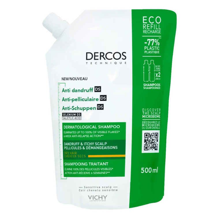 VICHY DERCOS SHAMPOOING TRAITANT ANTI-PELLICULAIRE ECO-RECHARGE 500ML en vente en ligne, sur le site de votre parapharmacie à prix discount.