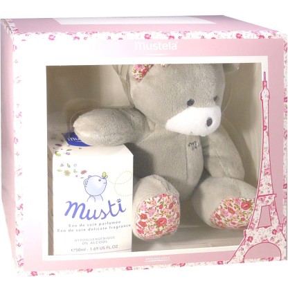 Le coffret Musti Fille de MUSTELA à prix discount dans votre parapharmacie en ligne, contient un joli ourson tout doux et une eau de soin parfumée Musti. Fille