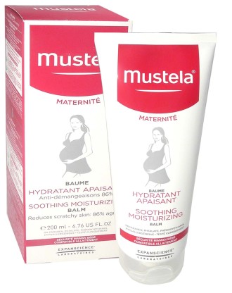 Le baume hydratant apaisant Maternité de MUSTELA, le soin destiné aux mamans enceintes et après l’accouchement pour hydrater et apaiser la peau lors de tiraillements et inconforts. Corps.