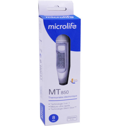 Thermomètre Electronique MT850 discount de MICROLIFE, le nouveau thermomètre 3 en 1 pour une prise de température très précise en seulement 8 secondes dans votre parapharmacie en ligne à prix discount, dédié à toute la famille.