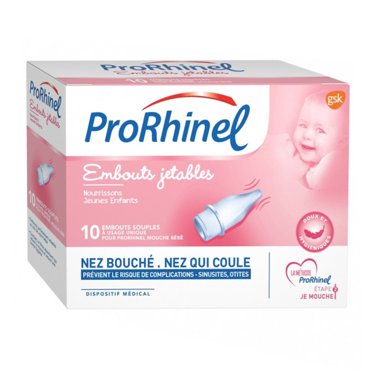 Les embouts jetables ProRhinel de NOVARTIS, les embouts pratiques, hygiéniques et adaptables au mouche-bébé ProRhinel pour moucher Bébé et libérer son nez en douceur.