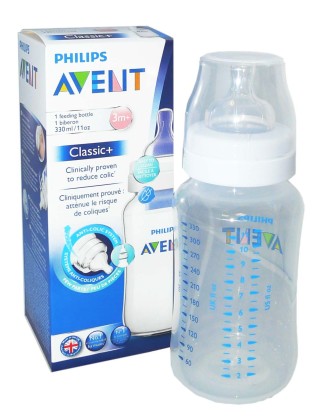 Biberon Classic+ d’AVENT, le biberon qui permet au bébé de 3 mois et + de passer du sein au biberon sans difficulté.