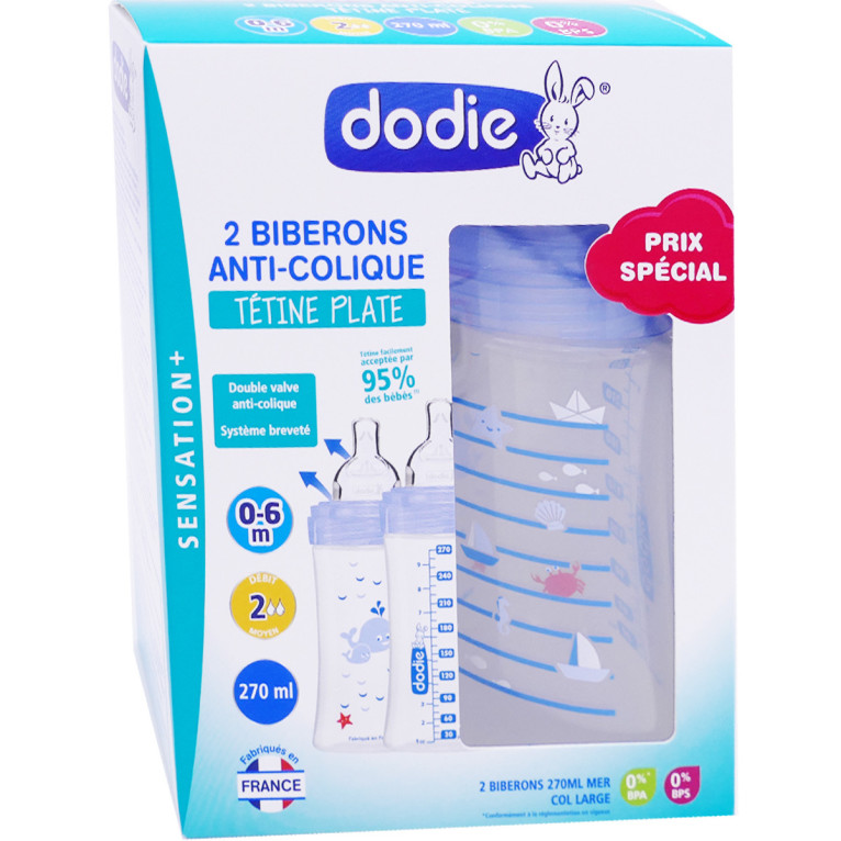 DODIE 2 BIBERONS ANTI-COLIQUE TETINE PLATE 270 ML