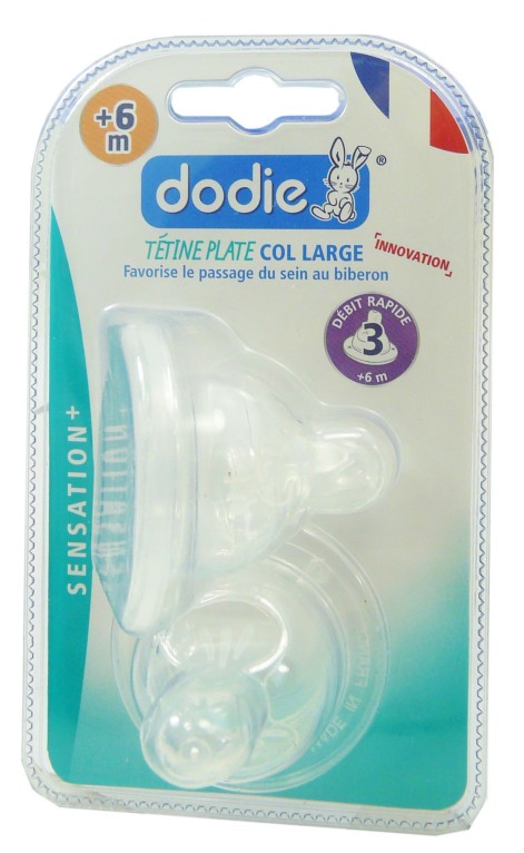 Les produits Dodie offrent aux bébés les meilleurs produits pour leur nutrition et leur confort et des produits aux mamans pour leur confort d'allaitement, de conservation et de stérilisation. Les tétines en silicone extra-souples débit 3 (rapide) plates ont la même forme et la même douceur que le sein de la maman avec une base élargie pour le plus grand confort de bébé lors du repas ressemblant à l’allaitement au sein. Sa technologie bénéficie d’une double valve intégrée à la tétine qui limite les coliques, les régurgitations et l’aérophagie en faisant circuler l’air régulièrement dans le biberon. Les tout-petits passeront facilement du sein au biberon tout en retrouvant les sensations de la douceur de la maman. Les tétines sont compatibles avec les biberons Initiation et Evolution de DODIE.