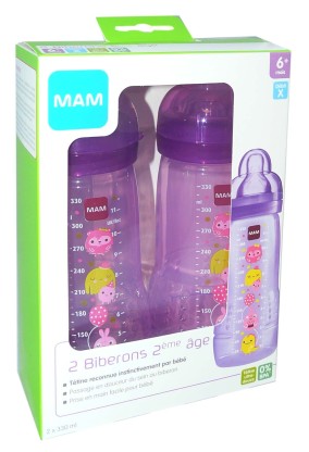 MAM développe depuis 35 ans des produits de puériculture uniques, tant par leur design que par leur fonctionnalité, afin de favoriser le développement des jeunes enfants et répondre aux exigences de leur parents. Chaque produit est conçu en partenariat avec des professionnels du monde médical, pédiatrique et scientifique : médecins, sages-femmes, psychologues du développement, designers et experts en technologie, afin que tous les bébés démarrent la vie du bon pied. Le biberon 2ème âge MAM de 330ml, en plastique incassable, qui offre une bonne prise en main, est ultra-fonctionnel avec son ouverture large qui permet un dosage facile du lait et un nettoyage efficace, son capuchon gradué hygiénique et antifuite. Sa tétine est formulée à base de silicone doux comme la soie et extrêmement moelleux, sa forme légèrement aplatie rappelle instinctivement le sein, facilitant ainsi la prise de la tétine par Bébé.