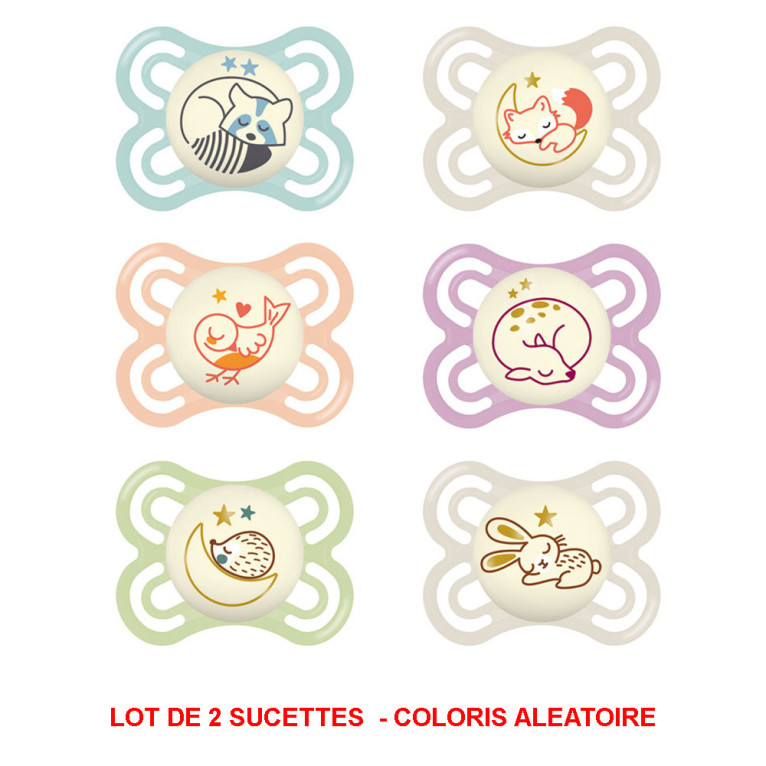 MAM SUCETTES PERFECT NUIT 2-6 MOIS SILICONE LOT DE 2 - DECOR 12
