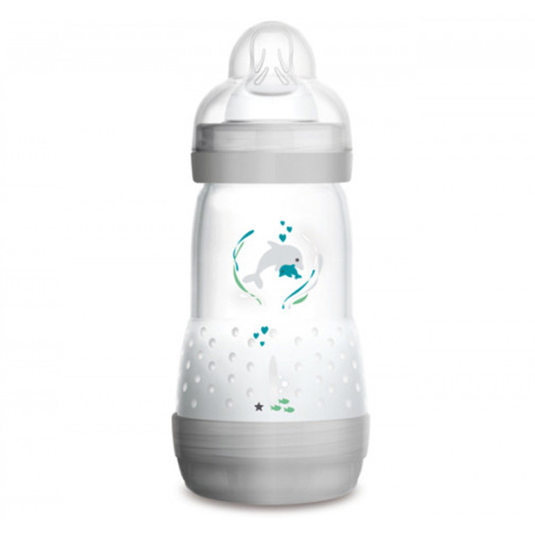 MAM développe depuis 35 ans des produits de puériculture uniques, tant par leur design que par leur fonctionnalité, afin de favoriser le développement des jeunes enfants et répondre aux exigences de leur parents. Chaque produit est conçu en partenariat avec des professionnels du monde médical, pédiatrique et scientifique : médecins, sages-femmes, psychologues du développement, designers et experts en technologie, afin que tous les bébés démarrent la vie du bon pied. Le biberon 1er âge MAM de 260 ml, en plastique incassable, qui offre une bonne prise en main, est ultra-fonctionnel avec ses larges ouvertures qui permettent un dosage facile du lait et un nettoyage efficace. Il peut être chauffé ou stérilisé au micro-onde (fonction auto-stérilisante). Sa tétine est formulée à base de silicone doux comme la soie et extrêmement moelleux, sa forme légèrement aplatie rappelle instinctivement le sein, facilitant ainsi la prise de la tétine par Bébé. Ce biberon possède également une valve brevetée anti-colique qui permet de réguler l’ingestion d’air par bébé. Coliques diminuées dans 80 % des cas.